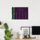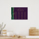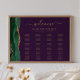 The left-hand edge of this elegant modern wedding seating chart features an emerald green watercolor agate border trimmed with faux gold glitter. The word "welcome" appears at the top in elegant gold-coloured handwriting script with swashes at the beginning and end. Customise with the names of the bride and groom and wedding date in italic font. Edit the four columns with a list of your guests' names and table numbers in gold-coloured copperplate font on a purple background. Accommodates up to 100 names.
