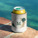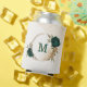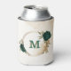 Beautiful can cooler featuring emerald green and beige gold flowers with green leaves .