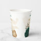 Beautiful fall paper cup featuring emerald green and beige gold flowers with green leaves .