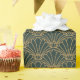 Emerald green and gold art deco fan flower motif wrapping paper. The design features a repeating emerald green and gold fan flower pattern. 1920s Gatsby style motif.