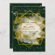 Emerald Green background with gold glitter and a golden geometric frame. Matching invitations and wedding party supplies are available in this collection suite.