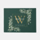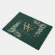 Emerald Green And Gold Monogram Greenery Floral Doormat