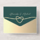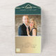 Make a statement with this sophisticated emerald green and faux gold all-in-one wedding invitation featuring a romantic rope heart design, elegant calligraphy script, and a photo of the couple. Includes built-in RSVP and meal choice options with a convenient QR code — all in one stylish foldable layout.