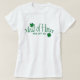 This forest green and white "Maid of Honour" t-shirt has lucky 4 leaf clovers on the front, with a green shamrock as the dot of the "i". Customise it to have the wedding date or other text on it.