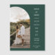 This beautiful Save the Date magnetic card features an elegant calligraphy and simple sans serif typography font with an arch shape photo on an emerald green background for a clean minimalist and modern look, which is a beautiful way to inform about your upcoming wedding. Announce to your family and friends you are getting married with this save the date magnetic card and add a personal touch with beautiful pictures of you and your soon-to-be better half. The simplicity of this design adds a touch of elegance to your wedding. It works well with many wedding themes and definitely a great addition to your wedding. Just customise the names and wording in a few easy steps and personalise the magnetic card with your photo of the happy couple.