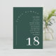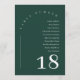 This simply elegant modern minimalist table number card features a simple serif font in an arch shape on an emerald green background. You can personalise/customise the table number card and guests names to anything you like.