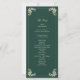 Elegant wedding program card in emerald green with ornate baroque gold flourishes and a luxurious Victorian monogram. This double-sided program provides space for the ceremony order, musical selections, readings, and the wedding party list. A timeless design that perfectly matches an emerald green and gold wedding invitation suite, ideal for couples planning a sophisticated and formal celebration.