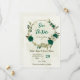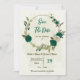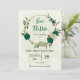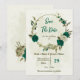 emerald green beige flowers botanical wedding save the date
