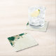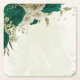 Beautiful romantic paper coaster featuring emerald green and beige flowers and some leaves .