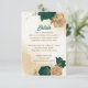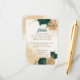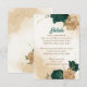 Beautiful wedding details enclosure card featuring emerald green and beige gold flowers with green leaves .