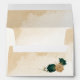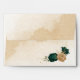 Beautiful fall wedding envelopes featuring emerald green and beige gold flowers with green leaves .