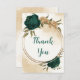 Beautiful wedding thank you card featuring emerald green and beige gold flowers with green leaves .