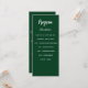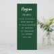Program and menu card. Personalise and add your name, date and the menu. Emerald green coloured background, white text.