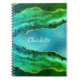 Emerald green and blue agate, marble stone print as background Personalise and add your name. The name is written with a modern hand lettered style script.