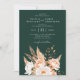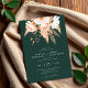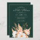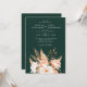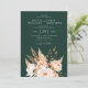 Emerald green floral theme wedding invitation featuring boho chic watercolor flower accents of peony roses and pampas grass. Simple to personalise with the details of your wedding for your guests in elegant minimalist typography.