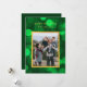 This photo holiday card features your photo and the words "Happy New Year" in faux gold foil against an emerald green bokeh lights pattern background. Card has a dark green background back side.