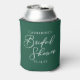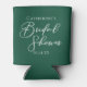 An elegant emerald green bridal shower can cooler for an outdoor forest party. Personalise this pretty favour with the bride's name in chic white minimalist typography.