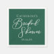 An elegant emerald green bridal shower napkin for an outdoor forest party. Personalise this pretty decor with the bride's name in chic white minimalist typography.
