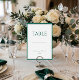 Make your wedding reception seating arrangements a breeze with this elegant green calligraphy table number card. Featuring a sophisticated dark green border and classic serif font for 'TABLE,' this design offers a clean and refined aesthetic. Below the table number line, a delicate script font displays the couple's names and wedding date, adding a personal touch to each card. This design is perfect for a formal or modern wedding seeking a touch of understated luxury and organization for their guests.