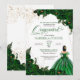 Emerald Green Elegant Roses and Gown Quinceanera I Invitation