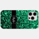 Emerald green faux glitter sparkles Monogram Case-Mate iPhone Case