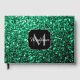 Emerald Green faux glitter sparkles Monogram Guest Book