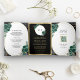 Emerald Green Floral Black Marble QR Code Wedding Tri-Fold Invitation
