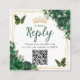 Emerald Green Floral Butterfly Quinceanera QR Code Enclosure Card