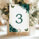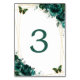 Emerald Green Floral Gold Butterflies Wedding Table Number
