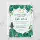 Emerald Green Floral Princess Tiara Quinceañera In Invitation