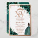 This luxe Quinceañera real rose gold foil invitation features vibrant emerald green roses floral, a girl in a lovely emerald green dress and elegant rose gold accents. Personalise it with your details easily and quickly, simply press the Edit Using Design Tool button to further re-arrange and format the style and placement of the text. Explore coordinating items available in-store to create a stylish and cohesive celebration! (c) The Happy Cat Studio