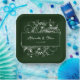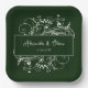 Personalise a unique paper plate for wedding reception guests with a set of Emerald Green Flourish Bridal Shower Paper Plates. Paper Plate design features an elegant leafy flourish with matching coloured background. Personalise with the groom and bride's names along with the wedding date. Additional wedding stationery available with this design as well.