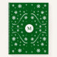 A Recipe Notebook with white Flower Power pattern, a dark green monogram letter and floral ornaments in Emerald Green tones for your homemade preparations! Change inside paper for a school or office notebook!