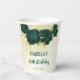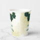 Beautiful paper cup featuring emerald green flowers and gold leaves.