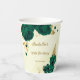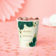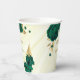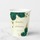 Beautiful emerald green flowers & gold leaves on marble background paper cup