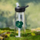 Beautiful emerald green flowers & gold leaves water bottle
