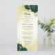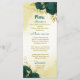 Emerald green flowers gold leaves wedding menu