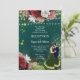 Gold glitter emerald green maroon flowers wedding reception invitation template instant download. Dancing green dressed couple, gold glitter.