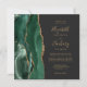 Emerald Green Gold Agate Dark Square Wedding Invitation