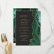 Emerald Green Gold Agate Dark Wedding Menu
