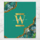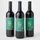Emerald Green & Gold Agate Geode Glitter Monogram Wine Label