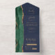 Emerald Green Gold Agate Navy Blue Wedding All In One Invitation