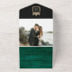 Make a bold statement with this elegant emerald green, black, and gold wedding invitation. Featuring a sophisticated design with a customisable monogram, a sleek black background, and a touch of gold, this all-in-one invitation is perfect for formal, rustic, or elegant weddings. Personalise with your details, use the QR code for easy RSVPs, and share your love story with a modern touch.