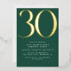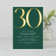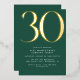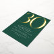 Modern-style 30th birthday invitations with a large heading "30" in real metallic foil. Your event details are printed below in matte white font. Unisex design with gold accents on a deep green. (Background colours can be changed by using the design tool. You may also change the type of metallic foil.)