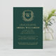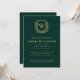 Emerald Green Gold Crest Monogram Graduation Party Invitation