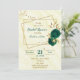 elegant romantic emerald green flowers and gold leaves botanical luxury bridal shower invitation