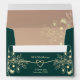 Elegant emerald green and gold wedding envelope featuring romantic floral accents and a heart detail. Perfectly designed to match the emerald and gold wedding invitation suite. A beautiful way to complete your wedding stationery, this envelope adds a luxurious touch to your mailings.