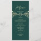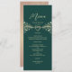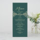 Elegant emerald green and gold wedding menu card featuring delicate floral details and a romantic rope heart design. Perfect for formal receptions, fall or winter weddings, and sophisticated banquet dinners. Personalise with your names, date, and custom menu selections to create a unique touch for your special day. Coordinates beautifully with matching emerald and gold wedding invitations, signs, and stationery from the same collection.