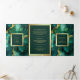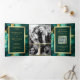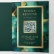 Emerald Green Gold Fluid Ink QR Code Wedding Tri-Fold Invitation