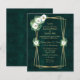PLEASE NOTE: This is a beautiful elegant style wedding invitation, with an emerald green paper background, a gold geometric frame and tropical flower accents.
